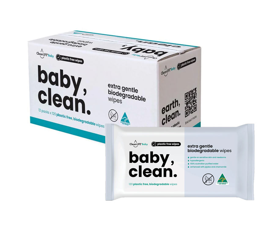 CleanLIFE Baby Clean Biodegradable Wipes are made of 100% plant based fibres and Australian purified water. What NO parabens or phthalates, our wipes are hypoallregenic and dermatologically tested, providing a gentle, non-irritating wipe for babies, newborns and sensitive skin areas. Biodegrades in 45 days with zero mircoplastics, check your local council for green bin disposal.